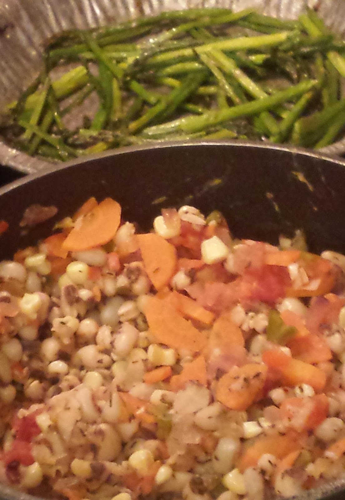 So instead I made Hoppin' John, which in my opinion could have used a lot more Hoppin' and a little less John. But I haven't tasted it. Maybe that half of a jalapeno I threw in will add some.