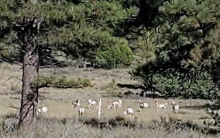 Later Molly and I took a one-hour walk along the bike trail which followed the road, but spaced away from it far enough that the road noise was minimal (you could only hear the loudest of the tour buses). We saw a herd of 11 pronghorn off in the distance; also several chipmunks, western bluebirds, and nuthatches. That's why I love walking--on the road the cars sped past; on the trail the bikes sped past. None of them saw what we saw.